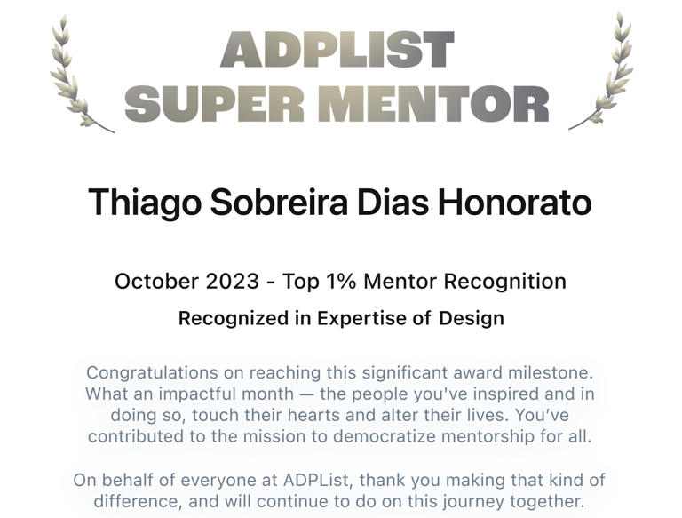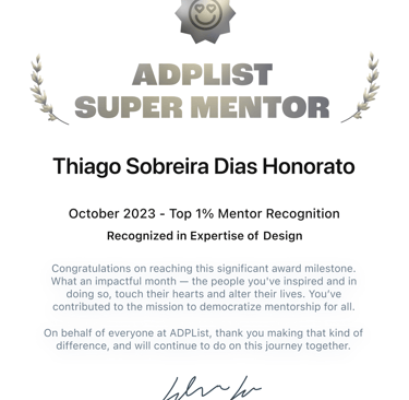 Amei a mentoria com o Thiago, esclareceu muitas duvidas e deu várias recomendações. Sai da conversa com mais clareza sobre a área de ux/ui